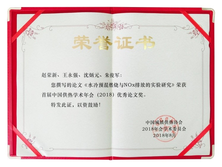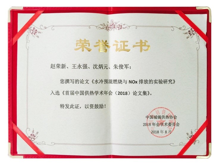会前征集了247篇学术论文,评审组长为江亿院士。力聚投稿一篇论文题目为《水冷预混燃烧与NOx 排放的实验研究》被评为22篇优秀论文之一,成功入选论文集。